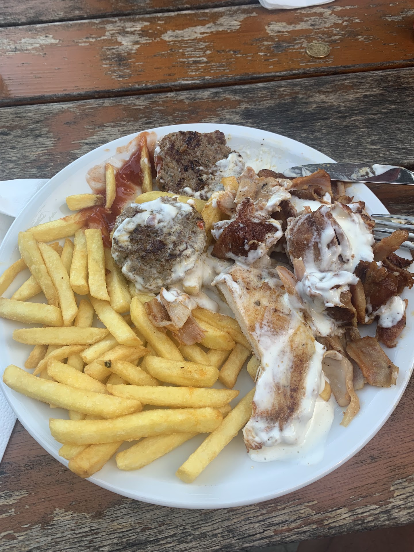 Quick dinner - Choose by rating Super cool terrace and location. Spacious easy to park with car. Order at counter then when is ready pick up. I was expecting a bit more according the ratings. The meat was tasty but way to salty. I have ordered Grill-plate with 3 different meat but every meat was salty. My partner took the the wrap and Doner meat was salty. It could be super nice but a bit less salt I would recommend. Plate service could be a bit more creative with a bit of fresh salat on the plate or some home made sauces. To sell a Grill plate at €15 euro could be more attractive. Thank you very much we will...