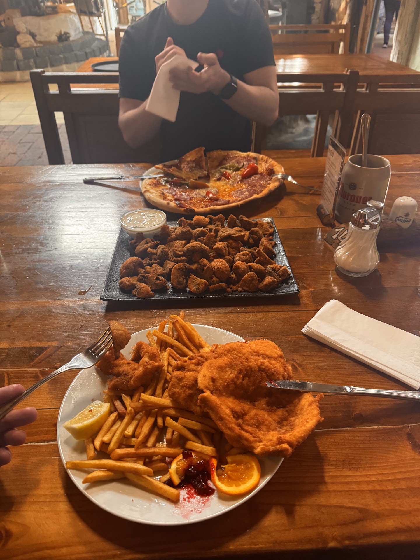 Absolute stunning experience, was on public holiday for dinner. Due we charged our car and I charged there quite often but never had the chance to take dinner there. Service and location: restaurant typical Austrian and Austrian service, friendly a bit naughty and always try to make the guest happy. Food: Stunning quality for huge portions. We ate pizza, Schnitzen, and deep fried Champignons and as a starter soup. All tasted really outstanding delicious! Big compliment to the kitchen team which make the food faster then announced. Thanks to the team for the great service and please continue the way how you run it! A full recommendation if you pass by! Every highway restaurant is far behind their standards! Price: for this size of portions it’s really CHEAP! Love this place and see you next time and will always charge my car there!