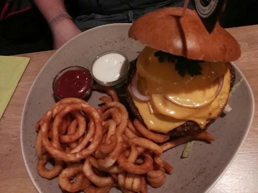 Read moreSo macht Essen Spaß. Das Personal scheint sich bestens untereinander zu verstehen und diese positive Energie geht dann gleich auf die Gäste über. Die Kellnerinnen waren mega freundlich und der Kleine, der etwas grantig an dem Tag war, wurde auch gleich beruhigt. Man kann das Service wirklich nur loben. Aufmerksam, schnell und freundlich. Besser geht es es nicht. Das Essen war preislich wirklich mehr als okay. Hier darf sich niemand beschweren. Schon gar nicht bei der gelieferten Qualität und auch von der Menge wird man auf jeden Fall satt. Super fand ich auch, dass man gefragt wird wie man seinen Burger haben will, man versteht sein Handwerk also. Und auch auf alle anderen Sonderwünsche wurde ohne Probleme Rücksicht genommen. Geschmacklich waren die Burger top. Super saftig und auch die anderen Speisen waren wirklich lecker. Ich kann es jedem nur sehr ans Herz liegen hier her zu kommen. Wir kommen auf jeden Fall...