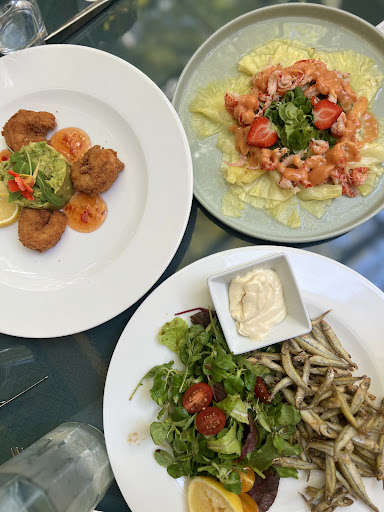 Read moreGehoben. Angenehm. Gemütlich und "casual" sind sicher nicht die Adjektiva, die ich für dieses Restaurant verwenden würde. Die edel gedeckten Tische und auch die Karte zeigen auf den ersten Blick, dass es hier höherklassig zugeht - trotz der Jeans, die die Kellner tragen. Es ist aber nichts dagegen zu sagen, mal eine Stunde mit durchgedrücktem Kreuz schön aufrecht auf dem Sessel zu sitzen. So kann man auch das sehr hübsche und leckere Gedeck besser genießen. Der Lachs war fein und nicht überkocht; vegetarische Optionen gab es auf der Karte nur zwei, aber wir bekamen Feta-gefüllte Spinatknödelchen angeboten, und die waren wirklich leicht und nett. Zwei von der Menge her sehr überschaubare Hauptspeisen und ein Weißbier um 45,80. Das Publikum waren fast durchwegs ältere Herrschaften; meist kleine Grüppchen von 3-6 Personen. Nichts für die schmale Geldbörse, aber eine schöne Abwechslung, wenn man nach etwas Solidem und doch Leichtfüßigem...