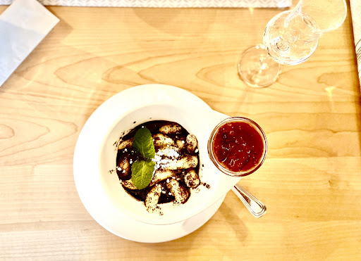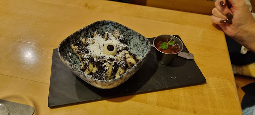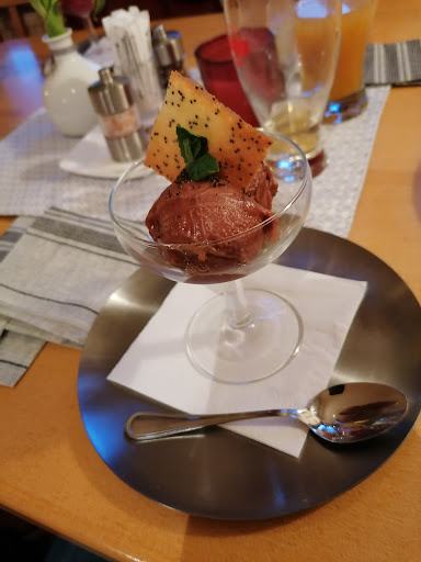 Read moreEin sehr gemütliches Ambiente, die Speisekarte bietet Bodenständiges sowie Ausgefallenes und variiert von Zeit zu Zeit. Es sind Hochstühle verfügbar, auf der Damentoilette gibt es außerdem die Möglichkeit sein Kind zu wickeln. Die Bärlauchsuppe schmeckt sehr gut, sehr nach Knoblauch, was ich persönlich gut finde. Des Weiteren hatte ich die knusprige Ente auf Ramennudeln, die Ente war zartrosa gebraten aber leider nicht knusprig. Durch das Rotkraut haben die Nudeln sehr nach Zimt geschmeckt und für mich hat nach einem halben Teller alles nur mehr süß geschmeckt. Das Bärlauch-Pipihendl (sautierte Landhendlbrust, Gnocchi, Bärlauchsauce, sous-vide gegarte Karotten) ist eine gut durchdachte Komposition verschiedener Geschmäcker und zu empfehlen. Die Erdäpfel-Trilogie ist mal etwas anderes, sehr lecker und Vegetarier können hier die Bratensauce abbestellen. Ebenfalls etwas Anderes ist auch das Gericht "Langos/Landhendl/Kukuruz" und ist eine gut Vorspeise oder auch gut geeignet für den kleinen Hunger. Das hausgemachte Zwetschkensorbet schmeckt leider nach 'zu alten Zwetschken'. Die Himbeer-Schoko-Bombe ist sehr lecker, vor allem das Himbeerchutney. Der Snickers-Cheesecake ist auf jeden Fall die Versuchung wert, das Bananensorbet dazu ebenfalls sehr lecker! Wovon ich enttäuscht war, war der Traubensaft. Ich hatte einen 'richtigen' Traubensaft erwartet, dieser schmeckte allerdings nach 'Traubensaft...