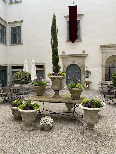 Wir haben das Schloss spontan besucht und haben kurzfristig noch einen Tisch in der Schlossküche reservieren können. Das Ambiente in der Schlossküche ist ein Traum, aufgrund der warmen Temperaturen haben wir einen Tisch im Innenhof des Schlosses bekommen, wo man sich einfach nur wohlfühlen kann. Die Bedienung war sehr freundlich und bemüht. Die Karte ist sehr gut überlegt, und es gibt auch vegetarische Speisen. Leider vertrage ich Pilze nicht sehr gut und die vegetarische Hauptspeise aus eben diesen bestand, zauberte mir die Küche spontan ein herrlich, leichtes Pastagericht mit Gemüse. Das Essen war vorzüglich, auch die Desserts sind sehr zu empfehlen! Die Weinauswahl ist perfekt auf die Speisen abgestimmt. Wir haben den Abend in einem wunderschönen Ambiente ausklingen lassen und uns noch ein Glas Rotwein gegönnt. Absolut zu empfehlen! Wir werde auf jeden Fall...