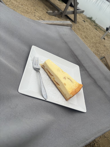 Great. Sitting next to the lake, with your feet literally touching the water — it doesn’t get much better than this. Food and drinks are quite quality, I really liked our menu which shows a love for typical Austrian cuisine but also international flavours. Amongst those, some calamari as a real classic when you’re next to the water, and some lovely cocktails to sit on while enjoying the view over the nearby boat harbour. Service is super nice, and they’ve got deck chairs to sit outside in the sand while the sun is out.