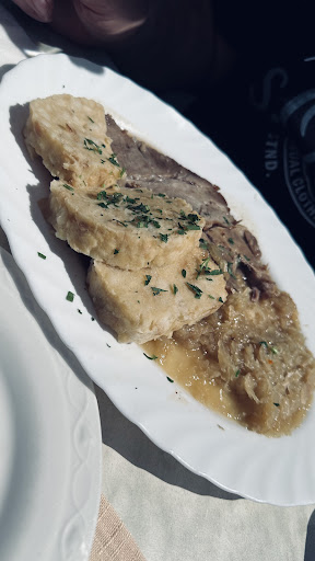 Wir waren zu zweit hier und eine der beiden Hauptspeisen kam 10 Minuten später als die Erste. Der zuvor servierte Wildschweinbraten war geschmacklich in Ordnung. Anstelle der Kartoffelknödel wurden Serviettenknödel kredenzt weil die Kartoffelknödel bereits aus waren. Das wurde zuvor nachgefragt, weswegen dies kein Problem war.