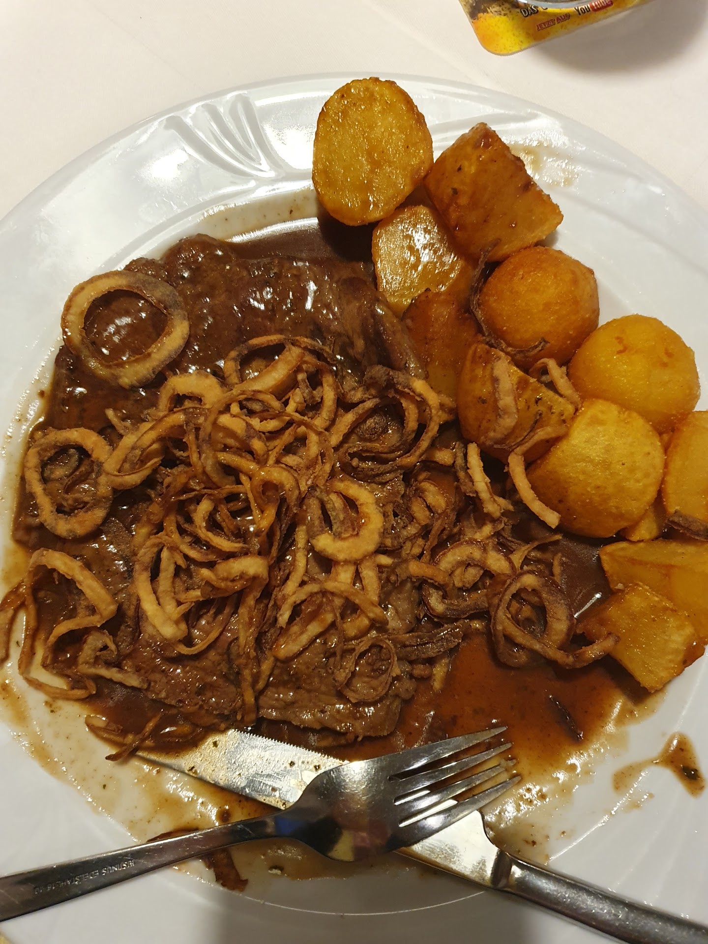 Read moreDas Essen war für den Preis unterdurchschnittlich. Insgesamt für 4 Leute 90.80 Euro.Gordon mit einen kleinen Salat 16.Euro extra Pommes 7.60.Und das Gordon war mit Schmelzkäse.Habe schon was beseres gegessen.Wir hatten jemanden mit Rollstull mit und wir kammen in der Gaststube fast nicht durch die Tür .Der Kellner schaute nur zu statt er die zweite Hälfte der Tür aufgemacht hätte.Ich habe einen grünen Salat mit Kernöll bestellt, bekommen habe ich so ein Tomaten Dressing und ich bin allergisch dagegen. Ich habe das den Kellner gesagt und der war nicht sehr freundlich. Also diesem Herrn hat man so richtig angesehen wie gerne Er arbeitet.(sarkastisch gemeint).Und mit Karte konnte man auch nicht zahlen. Dann Konten wir auch noch zum Geldautomaten laufen.Einmal und nie...