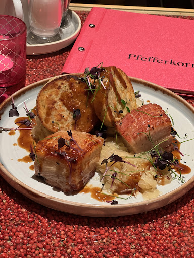One of the worst meal ever. `We ordered soup and curry rice. The soup was too spicy and too sour and instead of french toast we got a non-toasted baguette and so unedible croutons. Instead of curry we got curry spice in cream not so tasty and parisien cutted vegetables, too raw, too chunky and too big for using in rice dish. The rice was not steamed enough and instead of nishiki or some other sushi rice (cuz name of the dish is curry with rice and veggetables) basmati rice was obviously heated in the microwave not sticky and without any taste. Only good thing was a waiter who was very polite and barman who chose a nice wine. For almost 100e we expected more. Sorry Pfefferkörn but dis is very...