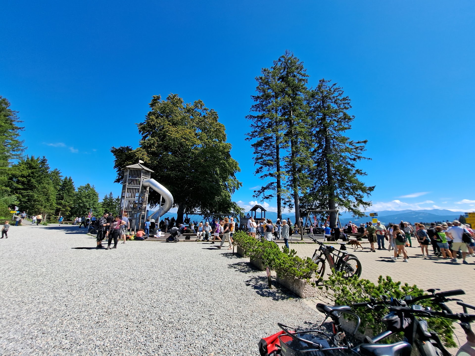 Leider haben wir, und auch einige andere heute, eine unschöne Erfahrung gemacht. Wir hatten unsere 5 Monate alte Tochter im Kinderwagen dabei. Es gibt an der Seite extra einen Eingang für Rollstuhlfahrer und Kinderwägen etc. Auf meine freundliche Frage hin ob es möglich wäre uns dort reinzulassen bekam ich nur die Antwort, dass ich den Kinderwagen doch die Treppenstufen hochtragen solle - er könne nicht für jeden extra aufschließen. Mürrisch machte man uns auf. Nach dem Essen versuchte ich allein den Kinderwagen die Treppenstufen herauf zu tragen. Dabei stand er so steil, dass meine Tochter mit den Beinen bereits heraushing. Also bat ich erneut um Hilfe. Darauf sagte man mir, dass der Kinderwagen mein Problem sei und ich nicht erwünscht sei. Danke für gar nichts! Anbei sei gesagt, dass man uns letzten Endes das Tor noch einmal aufschloss, weil der Herr mitbekommen hatte, dass andere Gäste auf die Situation aufmerksam wurden und mit Unverständnis reagierten und uns Hilfe anboten. Schade, die Aussicht ist wirklich traumhaft. Menschen mit Babys im Kinderwagen oder Menschen, die auf Hilfe angewiesen sind, sind hier...