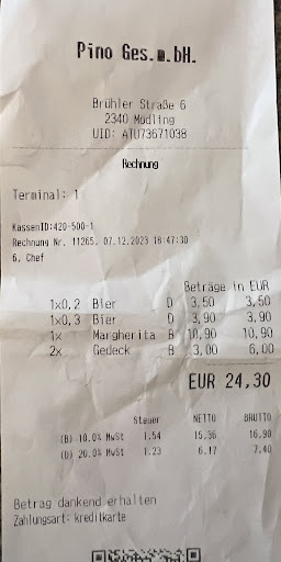 Read moreNormalerweise nehme ich mir nicht die Zeit, Bewertungen zu schreiben- aber diesmal ist es mir ein absolutes Anliegen. Da ich ein riesiger Mödling Fan bin, wollte ich mit meinem Lebensgefährten und unseren Freunden einen tollen Abend in einem netten Restaurant mit anschließenden Besuch am Christkindlmarkt verbringen. Ich wusste, dass es notwendig ist, einen Tisch zu reservieren- das habe ich 3 Tage vorher gemacht. Am Telefon wurde mir gesagt, dass die Reservierung nur von 18- 20 Uhr möglich ist- was für uns ok war. Wir waren pünktlich um 18 Uhr dort. Das Lokal war rasch sehr voll und es waren alle Tische besetzt. Leider musste ich schnell feststellen, dass die Karte keinerlei Aufzeichnungen bzgl. Allergene aufwies. Deshalb fragte ich den Kellner danach. Da ich an Zöliakie ( Glutenunverträglichkeit) leide, ist es für mich sehr wichtig, dass ich hier gut beraten werde. Leider musste ich feststellen, dass der Kellner keine Ahnung davon hatte- was ich zu Zeiten wie diesen schon sehr merkwürdig finde. Um sicher zu gehen, habe ich mich für ein Steak entschieden, da hier nicht viel schief gehen kann. Das Essen war gut. Allerdings war uns schnell klar, dass die Kellner es sehr eilig hatten, uns wieder los zu werden. Um 5 Minuten vor halb acht Uhr kam dann einer von den Kellnern und sagte, dass der Tisch nun gebraucht wird und wir bitte gehen sollen. Ich habe ihn dann darauf hingewiesen, dass mir der Tisch bis 20 Uhr versprochen wurde- er meinte dann, dass die Leute schon da wären und sie den Tisch brauchen. Beim Anziehen ist mir dann aufgefallen, dass die Gäste auf einem großen Tisch neben uns ebenfalls zum Gehen aufgefordert wurden. Ich habe dann eine Dame von dem Nachbarstisch gefragt- sie hat gemeint, dass sie genauso wie wir aufgefordert wurden zu gehen. Sie hat auch gemeint, dass sie so etwas noch nie erlebt hat und dieses Restaurant sie sicher nicht mehr sehen wird. Der Meinung kann ich mich nur anschließen. Die Kellner sind unfreundlich und man hat nicht das Gefühl hier willkommen zu sein- schnell essen, zahlen und so schnell wie möglich wieder gehen......