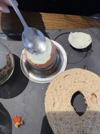 Die Speisen kamen in der richtigen Temperatur, doch damit endete die Professionalität. Das weiche Ei war eine Katastrophe. Das Eiweiß war flüssig und schleimig, völlig unausgegoren. Der Aufschnitt wirkte wie Standardware aus dem Supermarkt, geschmacklich fad und belanglos. Die Präsentation war in Ordnung, aber eher wie ein improvisiertes Frühstück bei der Oma als ein Teller in einem Restaurant dieser Preisklasse.