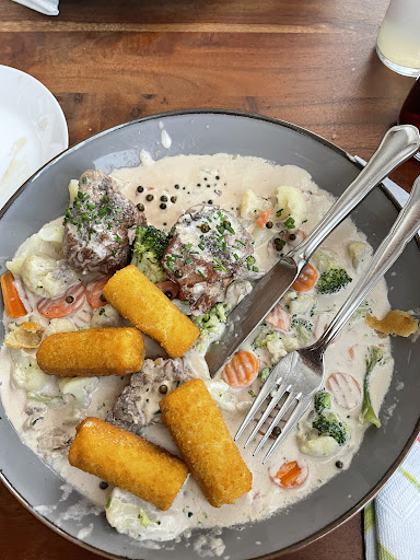 Das Service ist freundlich. Über das Essen kann ich nichts Positives berichten. Ich hatte Schweins Medaillons mit Pfeffersauce, die ich so wie am Foto wieder zurückgeschickt habe. Das Fleisch war steinhart und schwamm gemeinsam mit dem Tiefkühlgemüse in der geschmacklosen Schlagoberssauce. Schnitzel und Cordon waren ok, aber auch hier war das Fleisch nicht besonders. Zusammengefasst sehr...
