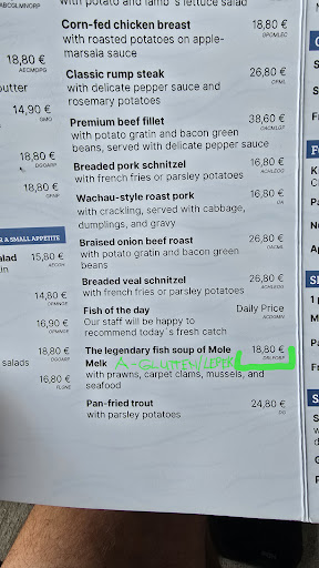 Read moreDavam schvalne nizke hodnoceni, aby to nezaniklo a upozornilo na problem. Všichni, kdo máte potravinové alergie, pozor. Dnes jsme byli v této restauraci a jídlo bylo výborné. Ale neverte informacim na jidelnim listku!!! Dali jsme si jejich vyhlášenou rybí polevku a hovězí steak. U steaku nam místo brambor donesli hranolky - bez upozornění předem. Ok. Ale byl zde jiny zasadni problem!!! U obu jídel nebylo v jídelním lístku uvedeno "A"tedy Lepek jako upozorneni pro alergiky !!!. Polévku servírují s chlebem vloženým přímo do polévky!!! A na chlebu je kreveta. Chleb vloženým do polevky je normalni chleb s lepkem !!! Potvrdil nám to číšník. Vůbec nechápou,co to udělá někomu, kdo nesmí lepek ze zdravotních důvodů!!! Kdyz jsme jim tedy řekli, ze manželka nemůže lepek a ze je to v rozporu s jídelním lístkem, donesli nám nejdříve jen bezlepkove pečivo. Ze si to máme vyndat. Prostě absolutne nechápou, ze uz drobky a malé množství pečiva zpusobi silne zazivavi potíže, teplotu a prujmy a 14 dní exémů a fleků a hnisavych puchýřů na pokožce. atd. Potom nám po dalším naléhání polevku vyměnili. Ale byla uz bez krevety. 😮💨 I po této infornaci nosili stále stejně servirovanou polevku s chlebem uvnitř. Takže Manažerovi restaurace, majiteli a kuchari tímto vzkazují. Pokud máte jídlo bez lepku, musí to tak skutečně být. Hrajete si se zdravím lidi !!! Pokud dáte chleba do polevky, musí tam uz být uvedené "A" nebo prostě servírovat odděleně !!! Je to škoda, ze takovým lajdactvim pokazí celkovy dojem. Polevka byla totiž naprosto vynikající. Jedna z nejlepších, kterou jsem kdy jedl. Tak se prosím zamyslete a výhodnoťte...