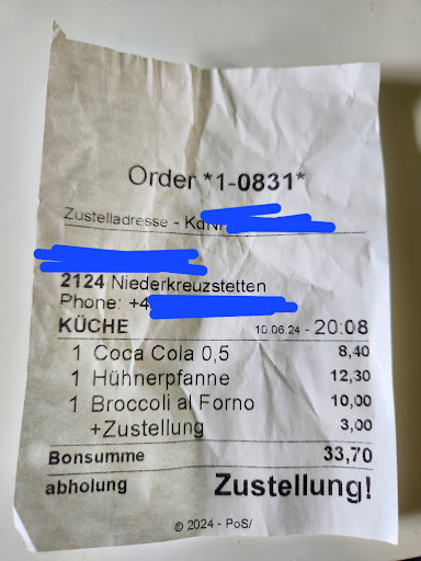 Werde dort sicher NICHT mehr bestellen, bezahle für die Familienpizza fast 25 Euro und das ist nicht gerade wenig.... Da erwarte ich mir schon das man mit dem Käufer höflich und freundlich umgeht..... 🤗👍