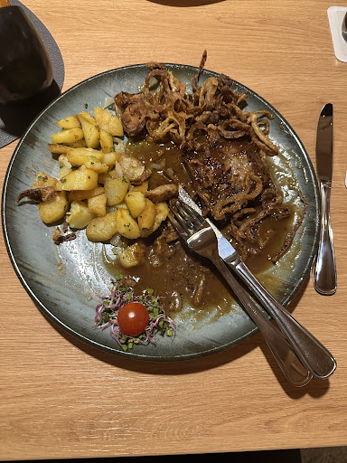 Leider ein auf und ab, wie ein Überraschungsei. Kennen das Lokal seit 20 Jahren. Früher konstant super, da hat einfach alles gepasst. Aber man merkt schon recht heftig jeden Führungs (oder Besitzer) Wechsel. Letztes Jahr wieder einmal probiert und es war genial. Voller Vorfreude nun in 2025 wieder dort hin….siehe Fotos. Einmal Zwiebelrostbraten: Fleisch frisch aber total Zähe. Die (frittierten) Zwiebeln wie Gummi und absolut ungenießbar. Davon aber 4 cm auf dem Fleisch. Die Bratkartoffeln waren ohne jeden Biss den man bei solchen erwarten würde. Mit Fett durchtränkte Stückchen, abgerundet mit ordentlich Salz. Alles in allem: auch mit gutem Willen ungenießbar. 2. Mahlzeit: Jägerschnitzel: Champions offensichtlich aus der Dose, Soße….gab es nicht wirklich. Die Panade matschig wie man diese keinem Hund vorsetzen würde und völlig nach altem Öl schmeckend. Pommes das einzig Gute an dem Teller. Wir haben das Essen so beendet wie auf den Bildern zu sehen. Es ging garnichts mehr runter. Lobend war der Service welcher recht schnell die Situation bemerkte und (immer wieder nach Rücksprache) professionell reagierte. Die gesamte Rechnung wurde storniert was uns unangenehm war weil wir auch Getränke hatten welche richtig gut waren. Der Service an sich war prima, schnelle Aufnahme der Bestellung, Getränke schnell am Tisch….aber als das Essen schon nach 9 Minuten auf dem Tisch stand ahnten wir schon nichts Gutes. Bitte…nehmt 5€ mehr pro Gericht, lasst die Gäste 20 min auf das Essen warten aber serviert ein Frisches Menü. Absolut schade für ein Lokal in einer...