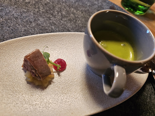 Der Gruß aus der Küche war sehr lecker und auch das Brot mit dreierlei Aufstrich war super. In einem - nach unserem Geschmack - tollen Tempo kamen Vorspeise und Hauptgang. Ein Essen war besser als das andere. Mit spannenden Geschmäckern der verschiedenen Gerichte, hatten wir richtig Spaß! Danke dafür! Die Weinbegleitung hat toll geschmeckt und die Auswahl ist außergewöhnlich.