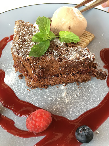 Read moreGood option to have a meal in the legendary 'Blaufränkisch' winery region of Burgenland. Nice, cosy terrasse with a modern lounge for a chill. The menu is not exactly the longest, but still quite comprehensive if considering that it offers a number of meat, fish and veggie dishes. My soup, which was supposed to contain diverse fish species, was rather catfish loaded, however it was very delicious, including the catfish. A Strudel-Trio was very good, though, for a moment, I had a feeling that it wasn't exactly today's baking work. But still very, very good meal. Extreemly friendly and quick service. A bit pricey considering...