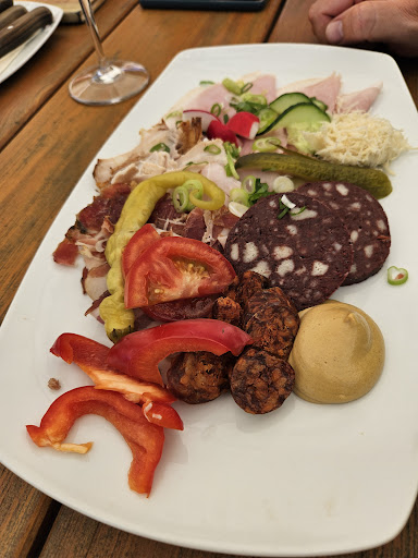 Neben (natürlich eigenen) Weinen gibt's auch eine kompakte Speisekarte. Die Weine, die ich gekostet habe, fand ich allesamt gut und was die Speisen betrifft, hatte ich mit dem Kümmelbraten-Teller eine ausgesprochen erfreuliche Köstlichkeit zu genießen.