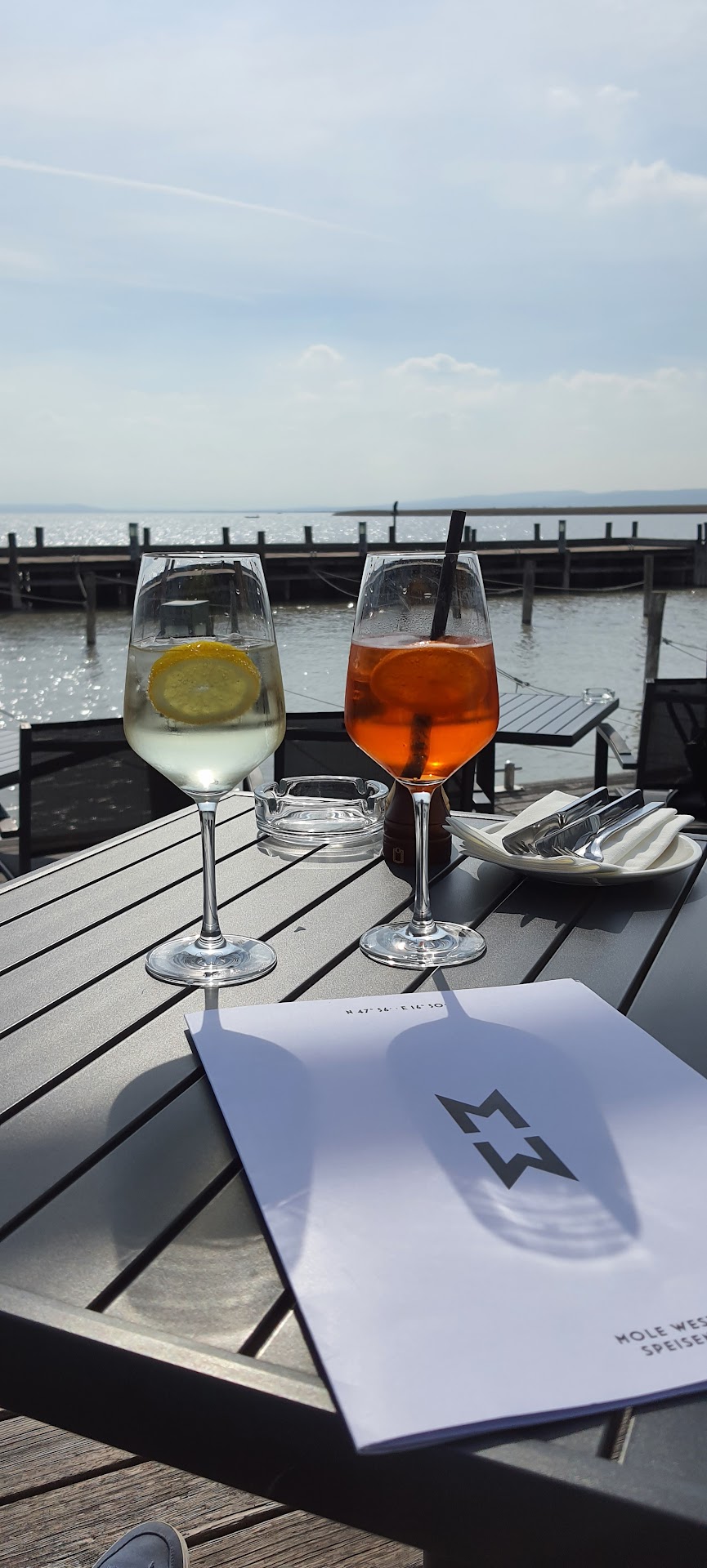 Here in the Mole West restaurant you take place on the pier right at the lakeside, and you can feel that your pace will become slower and slower. It is totally relaxing here at this popular lake, the Neusiedler See, one of Europe’s largest steppe lakes which is at its deepest point less than 2 meters (6 feet) deep.