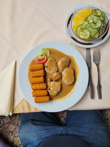 Read moreDas Essen ist ganz gut, wobei das Tiefkühlgemüse als Beilage auch nicht sein müsste. Das größte Problem ist aber, dass außer Fleischgerichten absolut nichts anderes mehr auf der Speisekarte steht. Früher gab es wenigstens noch panierte Scholle, aber die ist von der Karte verschwunden und was in der heutigen Zeit echt nicht zu glauben ist - man findet KEIN EINZIGES vegetarisches Gericht. Auf Anfrage wurde uns ein...