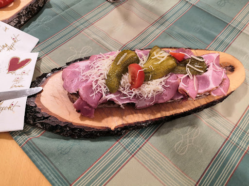 Ich war im Jahr 2020 schon mal dort, weil die Urlioma uns zu ihren Geburtstag alle eingeladen hatte. War damals schon begeistert. Sehr sehr gutes und vor allem frisch zubereitete Speisen. Das Ambiente lockt schon bei dem grossen Tor zum Reingehen an. Sehr liebevoll mit Blumen geschmückter kleiner Weg zum Restaurant. Drinnen alles sehr schön eingerichtet und sehr sauber! Da wir so begeistert waren, haben wir beschlossen, unsere Hochzeit beim Roni auszurichten. Das tolle war aber, dass wir nicht alleine planen mussten, sondern dass Roni mitgeplant hatte und viele Tipps gegeben hat, damit wir eine schöne Hochzeit feiern können. Man merkt sofort, dass hier Leute sind, die dass nicht zum ersten Mal machen, sondern schon Profis sind. Wir haben dann gemeinsam einen Tag vor der Hochzeit schon angefangen zu dekorieren und die Tische zu verstellen. Hat alles wunderbar geklappt! Wir wollten ein Buffet, da wir 40 Leute waren und dass bekamen wir! Aber was für eines.... Jeder war satt und wir haben danach so viel noch übrig gehabt, dass viele noch was für zuhause mitnehmen konnten. Das Essen....Also ein Plachutta oder Marchfelderhof kochen auch nicht besser! Der Tafelspitz konnte man mit der Gabel zerteilen, so zart war das Rindfleisch! Der Semmelkren ein Traum! Die Schweinsmedallions extrem lecker! Die Schnitzel genau richtig herausgebacken! Die Suppen einfach himmlisch! Die Salate ein Traum! Die meisten holten sich eine zweite Portion, aber nicht wegen Hunger, sondern weil ALLES geschmeckt hat! Das Personal immer freundlich und bemüht JEDEN Gast zufrieden zu stellen. Was auch geklappt hat! JEDER unserer Gäste hatte nur Lob übrig! Da hat einfach alles gepasst! Das Timing, das Essen, das Ambiente.... Als wir mit dem Essen fertig waren, wurde das ganze Essen, dass übrig war, wieder weggeräumt und gekühlt. Das ist auch nicht selbstverständlich, da ich schon oft erlebt hatte, dass das Buffet einfach stehen gelassen wurde, dass man nach Stunden nicht mehr sehr geschmacklich und hygienisch aussah... Als nach ein paar Stunden tanzen und feiern die ersten Gäste wieder hungrig wurden, wurde das Buffet wieder aufgebaut. Ich war schon auf einigen Hochzeiten, aber nirgends wurde so professionell gearbeitet wie hier! Die Hochzeit war dadurch einfach nur traumhaft! Daher volle Punktzahl und eine absolute Empfehlung von mir! Und ich bekomme für diese Rezension KEIN Geld oder sonstiges! Ist...