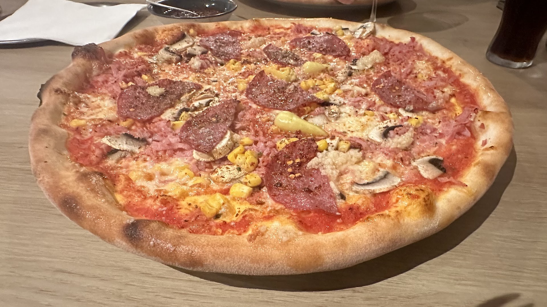 Read morekann die vielen überdurchschnittlichen Bewertungen leider nicht ganz verstehen 🤔 die Besitzer oder Angestellten sind zwar alle sehr zuvorkommend und freundlich aber von “die beste Pizza die ich je gegessen habe“ usw. sind wir leider meilenweit entfernt. das Preis-Leistungs-Verhältnis passt jedenfalls aber das Ambiente unterscheidet sich jetzt nicht wirklich von dem einer durchschnittlichen Kebab Bude die Pizza war zwar überdurchschnittlich groß dimensioniert sodass ich mich gefragt habe wie die in den relativ kleinen Pizzakarton passen soll aber der Teig und der Belag ist leider nicht so ganz Made in bella Italia 😏sondern gewöhnliche Bosporus Pizzakost vom Döner Mann um die Ecke, frage mich sowieso warum als Pizzeria mit italienischen Spezialitäten geworben wird aber egal, Döner Kebab Imbiss & Pizza, Pasta trifft da eher zu, für den großen Hunger zwischen durch und wenn man mit dem kleinen Geldbeutel unterwegs ist kann man sich bedenkenlos dort eine Pizza einverleiben, als romantisches Dinner for two würde ich dann aber eher echte Italiener bevorzugen sollte es die überhaupt in der näheren Umgebung...