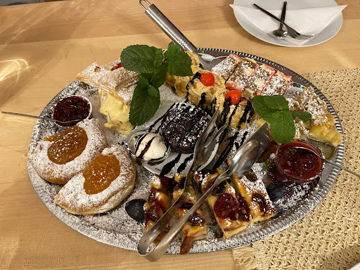 Das aufmerksame Personal hat sich direkt freundlich um uns gekümmert, uns einen Tisch angeboten und trotz einem merkbar vollen Lokal und Gastkarten mussten wir nie lange warten. Auch der Kinderwagen war hier kein Thema, denn das Lokal, der Gastgarten und das WC sind komplett barrierefrei. Im Garten gibt es nette Sitzgelegenheiten mit Naturschatten unter großen Bäumen, auch der moderne Spielplatz ist uns gleich aufgefallen.