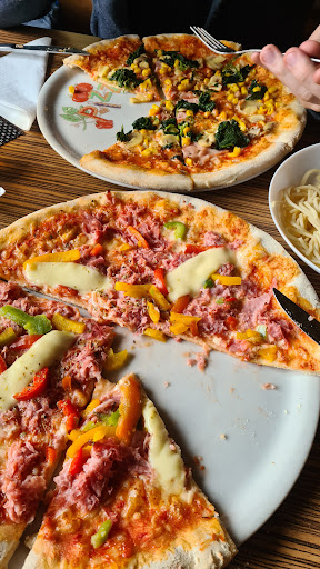Haben zu spätem Mittag noch die Pizzeria besucht da sie einen guten Eindruck machte. Bestellten uns eine Pizza und gebackene Palatschinken ( wobei man sagen muss es steht genau so auf der Speisekarte ) bekommen haben wir eine nicht fertige Pizza und EIN Stück Palatschinke welches sehr komisch geschmeckt hat. Die Konsistenz war „letschat“ und Ich glaube zu meinen die Palatschinken war vom Vortag da da Fleisch nicht frisch gerochen hat. Wir wollten danach schnell zahlen aber da kam auch die nächste Überraschung. Kartenzahlungen sind unerwünscht und nur Barzahlungen werden akzeptiert. Man musste zur nächsten Ortschaft fahren ( 10 Minuten entfernt ) um Geld abzuheben. Wenn man das doch weiß dann ist es selbstverständlich das man die Gäste nicht hin und her fahren lässt um zu bezahlen sondern sich eine Maschine zulegt. Sind dann sehr enttäuscht und hungrig wieder gefahren. Leider...