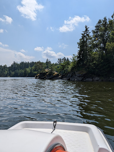 Read moreEin wunderbares Erlebnis an einem schönen sonnigen Tag ! Schon hundertemale daran vorbeigefahren , grade einmal auf Brücke der Bundesstrasse zu kurzer Rast angehalten und den super Ausblick auf den See und Natur genossen bis uns die Jugend darauf brachte doch mal den Stausee und Umgebung näher zu erkunden. Gesagt - Getan - siehe Oben ! Trotz gehörigem Andrang kein Problem bei der Zufahrt - Bootssteg, einen Parkplatz zu ergattern, wie noch sehr viele nach uns. Erstes Problem war jedoch - keine Boote egal was auch immer ( es gibt Ruderboote, Kanu, Elektroboote für 4-6 Personen, Tretboote ( am besten geeignet für Schwimmer, da eine Einstiegleiter am Boot das Hineinklettern sehr vereinfacht ). Hier ist etwas Geduld gefragt bis wieder Boote verfügbar. Aber kein Problem, man geht einen Stock höher ins Aussichtcafe/restaurant und geniesst wunderbaren Ausblick bei Kaffee und Kuchen oder gutem Essen. Einfache aber sehr gut zubereitetem Essen, das in Windeseile zu Tisch kommt - sehr beeindruckend bei wenig Personal und großem Andrang. Mein einfaches Grillkotelett mit Bratkartoffel und gegrilltem Gemüse hat wunderbar geschmeckt. Schon bei nächster Nachfrage konnten wir sofort ein Elektroboot mieten und hinaus ging es auf den See. Dort ging das Staunen los über die Größe des See - man fährt los und man wird überrascht von den vielen Abzweigungen des See´s, man fährt in eine dieser Abzweigungen hinein und denkt das ist wie eine Bucht, dabei öffnet sich das Ganze zu einer weiteren Bucht und wieder und wieder. Es scheint unendlich zu sein und man kommt aus dem Staunen nicht mehr raus. Die Natur ringsherum ist gewaltig, Felsen die zum Teil auch im See herausragen sind beliebte Plätze für Badende oder an den Uferrändern wo auch kleine Liegeplätze zum Verweilen einladen. Darüber türmen sich die Bäume in unterschiedlichen Höhen wie gewaltige Berge auf. Man fühlt sich ein bißchen wie ein Pionier der erstmals in solche Gefilde kommt da man so etwas ja tatsächlich nicht kennt. Das Gewässer ist warm und ladet unbedingt zum Baden ein. Etwas vergessen - es gibt auch 2mal täglich eine Rundfahrt mit einem größerem Boot mit Aussichtsplattform. Viele junge Leute sind auch mit Bikes rund um den See unterwegs und es gibt Abfahrten zu diversen kleinen Lagerplätzen zum Baden. Selbstverständlich ist das auch für Wanderer ein sehr beliebtes Ausflugsziel. ALSO AUF - den SEE ERKUNDEN - EIN BLEIBENDES ERLEBNIS FÜR...