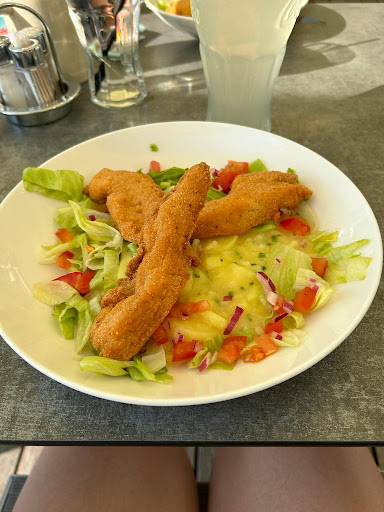 Read moreWe rented a little boat, no problems with that, so my review is focused on the restaurant itself. There, we were lucky and immediately got a table, even though the place was otherwise packed. As other people have mentioned, the view on the lake is great. We also didn't have to wait long for our food and drinks, but unfortunately not everything with the food was fine, that's why I only gave three stars. My father's dish - the carp - was good in principle, but one side of it had a real crust (just short of being burnt), and the piece of fish he got was really small. He was finished in no amount of time and still hungry. My mother ordered a burger, which was good, but the sweetpotato fries she got with it were far too salty and somehow squishy. What I can recommend, though, are the tagliatelle with shrimps. So, all in all, the place is definitely worth a visit, but you can get unlucky with the dishes. We did tell the waiter though, and he promised to relay it to the cook, so...