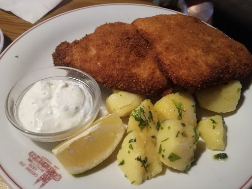 Read moreSchnitzel und Gordon Bleu waren sehr gut. Der Salat dazu war sehr wahrscheinlich aus der Dose. Die Grammelknödel waren gut, aber leider nicht ganz durch aufgewärmt. Das Sauerkraut für meineb Geschmack etwas zu essig-lastig, trotzdem gut. Cola war etwas abgestanden. Andere Gäste bekamen eine 0,33-Flasche,ich bekam es im Glas serviert. Das Lokal ist gemütlich. Das Rundherum um die Kirche ist sehr heruntergekommen und kein...