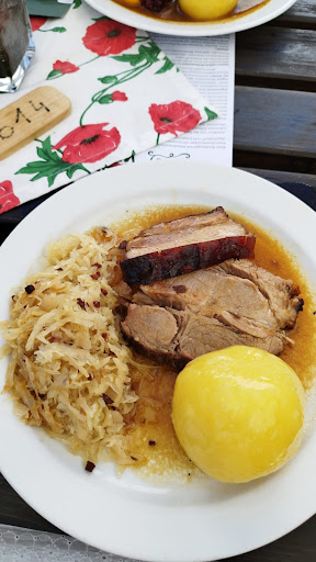Wiederum wurden wir (wieder mit 2 Hunden unterwegs) eines Besseren belehrt: Herr Neuwiesinger kümmerte sich , diesmal durch die Coronasituation erschwert, in seiner ruhigen und freundlichen Art um einen passenden Tisch für uns. Die Bedienung nahm flott auf und die bestellten Bratln wurden nach kurzer Wartezeit serviert, zusammen mit den Waldviertler Knödeln und dem Krautsalat ein Genuss...