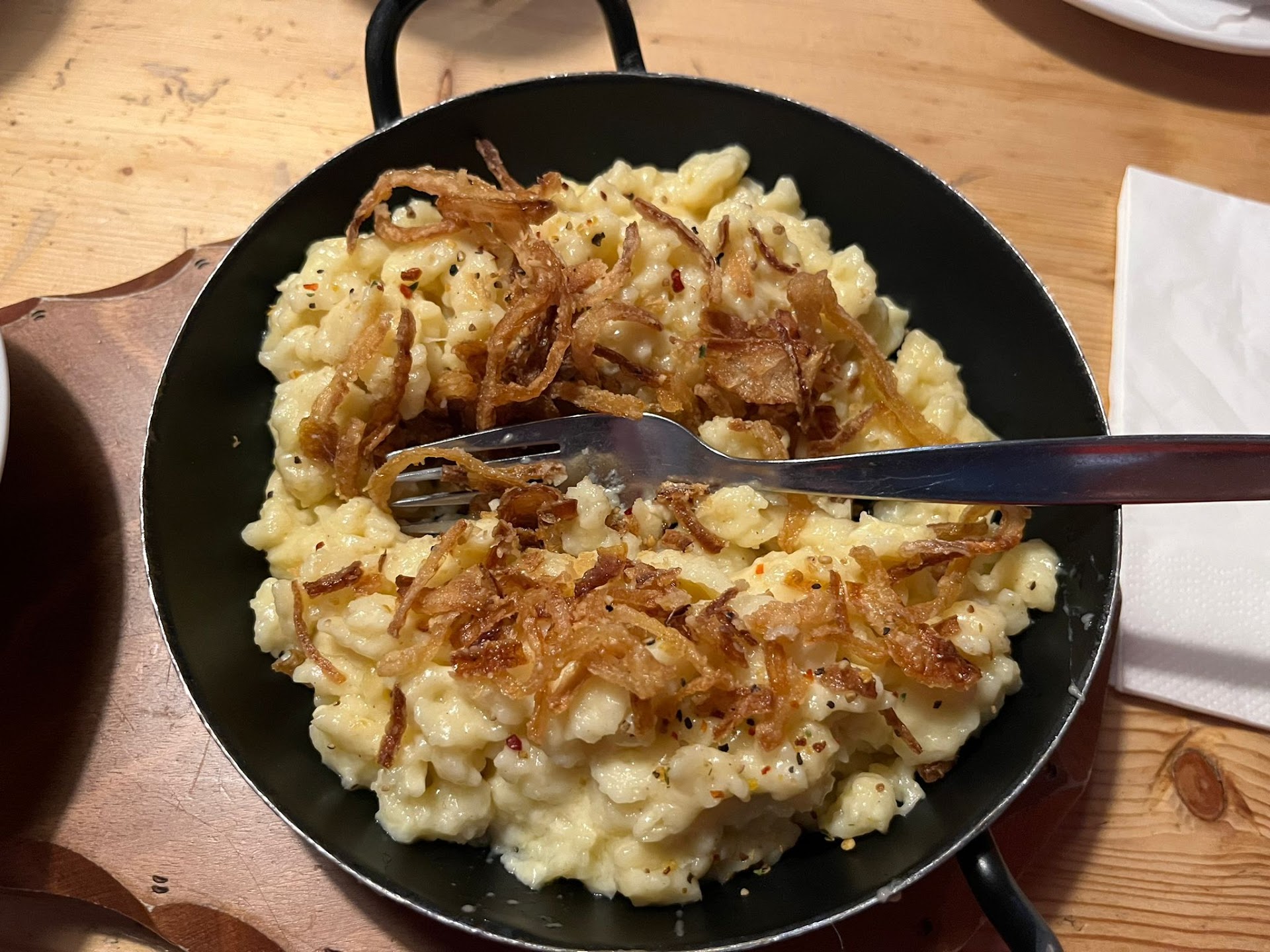 Read moreMeine Bewertung (Essen) bezieht sich wirklich nur auf das Essen. Die Getränke waren innerhalb von 5 Minuten am Tisch. Unser Essen wurde zweimal falsch an den Tisch gebracht, und als dann nach ca. 45 Minuten der Kellner selbst in die Küche ging, bekamen wir unseren Kaiserschmarren, eine Nudelsuppe und einen Wurstsalat. Der Kaiserschmarren hat in der Qualität im Vergleich zu den letzten Jahren deutlich nachgelassen, die Suppe war eher fad im Geschmack. Dafür wurden die Preise aber kräftig nach oben korrigiert. Das Verhältnis von Service, Qualität und Preisentwicklung passte einfach nicht. Hinzu kam, dass man sich am Tisch kaum unterhalten konnte, da die Musik zum Teil sehr laut war. Wir sassen im Wintergarten, und konnten uns daran erinnern, dass das auch schon die letzten Winter ein Problem war. Positiv ist, dass noch einige ältere Kellner da sind, die wirklich versucht haben einen guten Job zu machen. Eine traurige...
