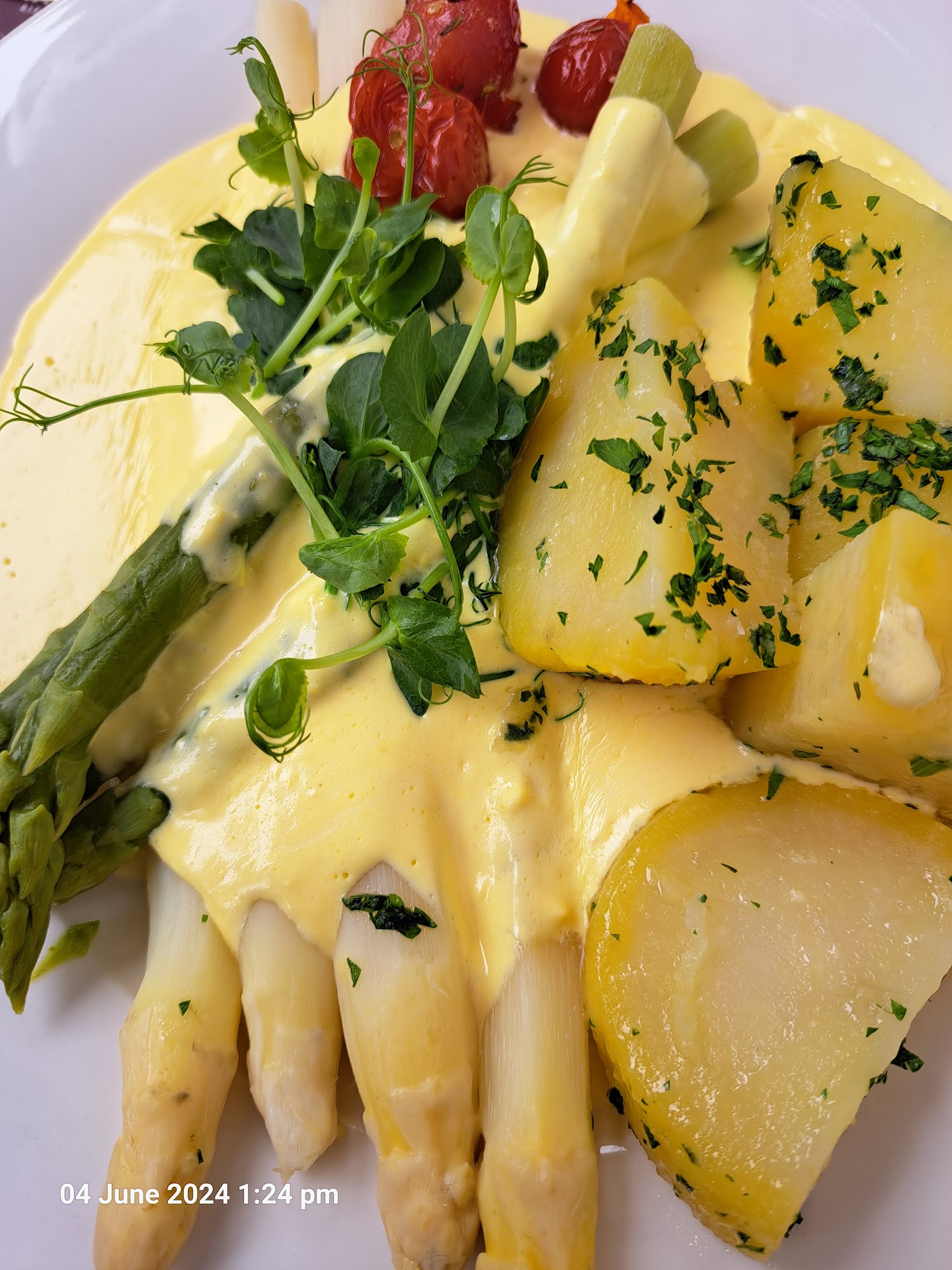Read moreWe loved our venison goulash and asparagus. Both are superbly cooked to perfection. The venison came with some cheese dumplings. Nice in small portions, a bit storgy if too many. Hubby loved the new potatoes instead, which came with my asparagus. Got a generous serving of asparagus, both grand and White ones. Excellent wine too. Highly...