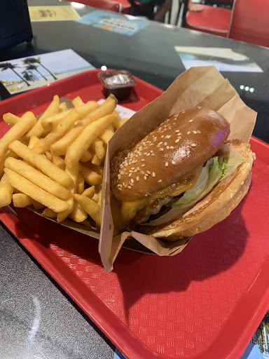 Read moreWe ordered the chicken cheeseburger with a side of fries. The chicken is supposedly grilled but didn't taste or look like it. I'm guessing these are frozen patties that they grill lines on....the burger was mediocre and not worth the âŹ12.50 price. The fries were too salty and cost âŹ7.90. They do give you a lot of fries but it's still not worth the price. It also took them a long time to prepare our order. This place even has the nerve to charge 90 cents for ketchup, mayonnaise and other condiments. The packet of ketchup isn't even enough for all the fries. As if that weren't enough, they ask for a tip when you pay with a credit or debit card. They get away with this nonsense because they're in an airport with very few options. Still, I'd recommend choosing a sandwich or poke before paying for this crap. Your other option is eating at the Burger King before going...