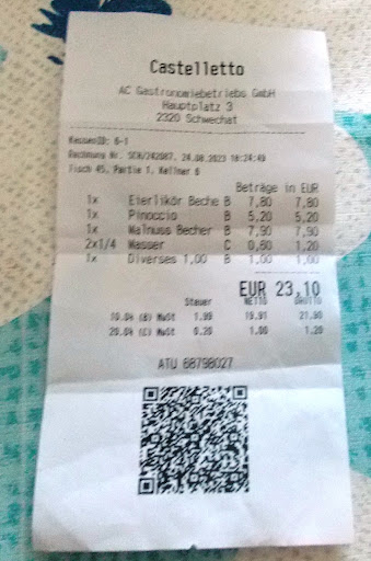 Read moredieses Lokal verdient nicht einen einzigen Punkt! Nach längerer Wartezeit bequemte sich endlich einer der Kellner zur Bestellaufnahme. Beim Servieren von meinem Eisbecher (Kaffeeeis gab es auch nicht!) ist bereits die Sauce über das Glas und auf die Serviette darunter gelaufen, daher auch nicht mehr brauchbar (Serviette). Ich hatte 2 Glas Wasser zu unserm Eis (eines davon für ein Kind!) bestellt. Pro 1/4 Liter wurden 60 Cent dafür verlangt! Als wir fertig waren, verlanget ich die Rechnung. Der Kellner kam, tippte irgendwas in sein Gerät ein und verlangte 23,10 Euro. Ich gab ihm 25 und er suchte in seinen Münzen, um den Rest zurückzugeben. Leider habe ich nicht sofort nachgezählt, aber es war mit Sicherheit nicht 1,90 Euro! Ich gab ihm trotzdem noch Trinkgeld, er mir aber nicht die Rechnung. Mir kam die Summe nicht korrekt vor, ich ging daher in das Restaurant und wollte den Bon haben. Nach längerer Zeit bekam ich diesen, es war dem Kellner sichtlich unangenehm, dass ich die Rechnung haben wollte (eigentlich ist es gesetzlich vorgeschrieben, den Bon dem Kunden UNGEFRAGT auszuhändigen, nun weiß ich auch, warum er das gar nicht wollte!) und erblickte neben den konsumierten Dingen eine Summe von 1 Euro für DIVERSES!! Darauf angesprochen, erklärte der Kellner, dass dieser Betrag vom vorigen Tisch noch in dem Gerät war, den er angeblich nicht abkassiert hatte! Na bitte, geht´s noch? Das grenzt ja schon echt an Abzocke oder gar Betrug! Ich soll nicht nur das teure und nicht so tolle Eis und Wasser für ein KIND und dann noch irgendwelche Kosten für irgendjemanden bezahlen?????? Wahrscheinlich wird das öfter so praktiziert, denn so kommt man auch zu viel Geld, für das man keine Leistung erbringen muss. Nie mehr werde ich und meine Familie dieses Restaurant aufsuchen! SCHANDE...