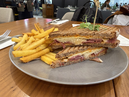 Read moreVery good place to spend some time while at the airport. Definitely price is on the higher side, but not too crazy and keeps the restaurant always with space to sit. The food is great, specially for an airport, it arrives warm and flavorful. The pastrami sandwich was really good and satisfying, with the fries actually being excellent. The pizza is satisfying at least. Drinks list is large and interesting with some good wines by the glass. I’d recommend choosing the cheaper options as I got the second cheapest from the reds and I’m Pretty sure it had been opened for a while, as also the waiter recommended me choosing the cheaper options, should’ve listened. Every time I’ve visited service is serious but efficient and effective, nothing to complain about and always present. The only thing is that would be nice to have more condiments on the table or proactively offer ketchup, mustard or mayo specially with fries or a sandwich. But when requested things arrived fast. Overall always a pleasant experience and...