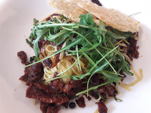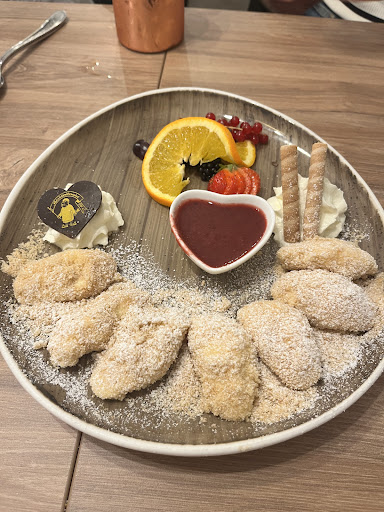 Read moreDas Essen hier ist sehr gut, auch wenn ich nicht weiß, warum bei einem Backhenderlsalat auch noch gekochtes Gemüse mit auf dem Teller liegt (aß meine Begleitung).Ich hatte Nudeln mit getrockneten Tomaten und Rucola, welche nicht nur optisch sondern auch geschmacklich ausgezeichnet waren. Die Freundlichkeit des Kellners und der Eigentümerin ist hervorzuheben. Diesbezüglich fühlt man sich hier auf jeden Fall sehr wohl. Was mich persönlich etwas irritiert hat, waren die optischen Einflüsse ringsum, die etwas zu viel waren: Unmengen an Dekoration, die nicht zusammen passte und etwas kitschig anmutete. Ein Gastraum der etwas in die Jahre gekommen scheint (wobei ich anmerken muss, das ich nur diesen einen gesehen habe, ich glaube es gibt mehrere) und billige Papierservietten, die unterschiedlicher nicht sein könnten (wir waren zu sechst an unserem Tisch und jeder hatte eine andere Serviette). Kurz und gut: Weniger ist manchmal mehr, aber das Essen und das Service hingegen ist...