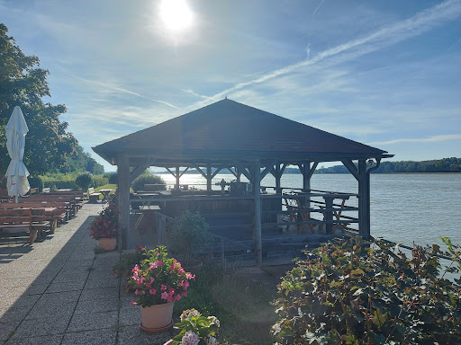 Read moreEs schmerzt. Der schönste und ruhigste Gastgarten am Ufer der Donau mit dem besten Sonnenuntergang, obendrein die einzige Labestation zwischen Muckendorf und Wien, ist geschlossen. Gleich daneben ist der Eingang zum „Café am Ufer“, welches auch sehr einladend war, mit Kette abgesperrt. Es ist zu einem Clubhaus für Yachtleute umgewidmet worden. Es ist jammerschade um diese beiden Oasen. Vor einiger Zeit: Es ist es Wert, vom südlichen Wienerwald über Berg und Tal hierher zu kommen. Das Lokal sieht gepflegt aus und die Speisen sind in Ordnung. Selfservice! Bestellt wird an der Schank und darf nach Lautsprecher-Nummernaufruf selbst serviert werden. Es liegt wunderschön an der Donau und man kann die vorbei-surrenden Motorboote und die größeren Schiffe von der ersten Reihe aus beobachten. Die traumhaften Sonnenuntergänge sind im Preis inbegriffen. Die Radwege sind in beiden Richtungen wunderbar und es ist der erschöpften Radfahrer wegen...