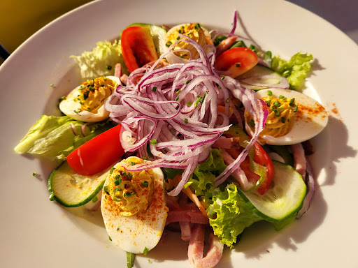 Read moreEssen & Getränke kann ich nicht beurteilen, sondern nur die Gastfreundlichkeit des Gastgebers. An einem Montag um 16:30 Uhr sind null Personen im Gastgarten und ich will mein teures Gravelbike nicht auf der Straße belassen sondern im Blickfeld haben.