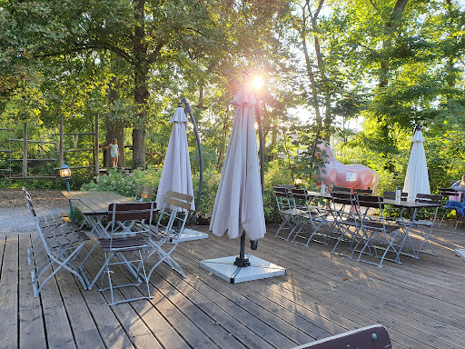 Wir (6 Erwachsene) waren heute zum Sunday Brunch & Lunch im Rahofer Bräu. Das Gebäude steht zwischen einem großen Spielplatz und dem Dumba-Park, mit Dinos, verschiedenen Figuren und einem Schmetterlingshaus. Es ist eher unscheinbar mit davorliegendem Parkplatz. Auf dem Parkplatz stehen die Bierbikes und im Garten, anschließend an die Terasse sieht man die Schlaffässer. Im Lokal gibt es unterschiedliche Bereiche - im Schankbereich, eine große Tafel in der Vinothek und ein "Eventsaal" mit großen Glasfronten, auch für Veranstaltungen wie Hochzeiten, mit Beamer usw. Ob die Vinothek noch mit diesem Raum koppelbar ist, konnte ich nicht erkennen. Es gibt von da einen direkten Zugang zum Aussenbereich. Wir hatten für 10 Uhr reserviert (am Vortag um 21.30 Uhr online) und gleich darauf eine Bestätigung erhalten. Wir hatten einen Tisch gleich beim Eingang, schön groß und nahe dem Buffet. Es war so kalt im Raum, dass wir erst die Jacken anließen. Ein sehr freundlicher Kellner kam sehr bald mit den Getränkekarten und nahm die Bestellung auf, während eine Küchenkraft noch das Buffet bestückte. Wir haben wegen der Temperatur den Kellner angesprochen, der meinte die Heizung sei schon aufgedreht. Zum Buffet: also die Beschreibung auf der homepage ist vielleicht schon ein bisschen blumig, aber grundsätzlich stimmig. Kornspitz, Semmerln, Baguette Erdbeermarmelade, Honig, Butter Fruchtjoghurt, Crunchy Müsli, 2 Hummus-Aufstriche Oliven, Kapern Wurst, Schinken, Käse Mozzarella-Tomate, Salat - grün und Kartoffel (gekauft) Tomaten, Paprika, Gurken gebratene Avocado (komische Konsistenz) Rührei, Spiegelei, harte Eier gebratener Speck + Schinken, Würstchen Erbsensuppe, klare Suppe, Backerbsen Spaghetti bolognese Hühnerfilet mit Tomate und Käse überbacken halbierte Burger Schnitzerl (schön dünn aber saftig) & Pommes, Ketchup Spareribs & Bratkartoffeln Lachs & Gemüse Kaiserschmarren & Beerenkompott Schokokuchen und Schwarz-Weiß-Kuchen Panacotta mit Erdbeersauce