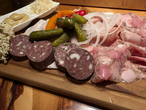 I recently visited here and enjoyed a satisfying dining experience. We started with a Brettljause, which included a variety of meats and sausages. The blood sausage was particularly good, and the thinly sliced meats were well-prepared. The pickles and Kren (horseradish) complemented the dishes nicely.
