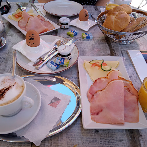 Read moreDas Café Arkadia (wir saßen im Außenbereich), bemüht sich ein gutes Ambiente zu schaffen (Arkadia ist halt ein bisschen eine Betonwüste und der Spielplatz ein sehr trister Anblick, aber dafür kann das Café ja nichts), gemütliche Sessel, saubere Tische, Töpfe mit einigen Grünpflanzen, viele Schirme sichern Schattenplätze, das Servicepersonal ist ausgesprochen freundlich und zuvorkommend. Ausreichende Auswahl der Frühstücksvariationen, schön angerichtet und köstlich. Preis-Leistungsverhältnis passt hier auch sehr gut, wir kommen...