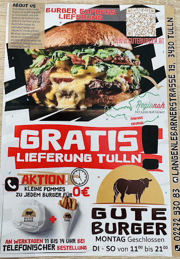 Leider gibt es keine 0 Sterne. Wir haben jetzt schon mehrmals bei Gute Burger bestellt. Beim 1. Mal alles wirklich top. Angefangen hat es mit einer saueren Käsesouße, wo mir dann am Telefon gesagt wurde das sie frisch geöffnet wurde, was ich mir nicht vorstellen kann. Und dann ist es nur mehr Bergab gegangen. Trotz der Bitte das sie uns die Burger und Pommes warm liefern sollen, auch wenn wir dafür egal wie lange warten sollen war es immer kalt und die Pommes sogar schon wahrscheinlich seit 5 Stunden fertig und kalt. Heute die Krönung, TROTZ ANRUF MIT DER BITTE das wir gerne länger warten aber die Burger und die Pommes warm sein sollen. Der Bruger kalt die Pommes kalt. Und das Fleisch im Burger total ROH !!!!! Anbei das Foto. Wir bestellen nie wieder dort. Wir haben ihnen jetzt MINDESTENS 8 Chancen gegeben aber nur beim 1. Mal war es Top. Normalerweise schreibe ich NIE NIE NIE Bewertungen aber sowas habe ich noch nie in meinem...