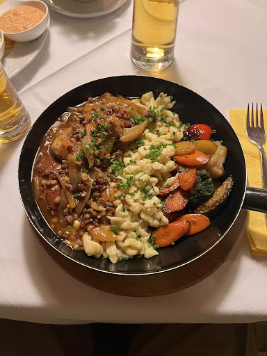 Die Speisekarte lässt keine Wünsche offen. Die Auswahl an Gerichten ist vielfältig und bietet für jeden Geschmack etwas. Besonders hervorheben möchte ich die regionalen Spezialitäten, die mit viel Liebe und Können zubereitet werden. Mein persönlicher Favorit war das traditionelle Käsespäzle, das zart und perfekt gewürzt war. Auch die hausgemachten Desserts sind ein absolutes Muss – besonders der Apfelstrudel war himmlisch.
