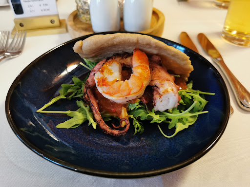 The menu is far more creative and balanced than your typical restaurant around here. If you want a break from all the regional stodge, Zwickmühle is the place. Pictured here is a spelt bao bun with prawn, pulpo and chutney. The ingredients are of noticeably high quality.