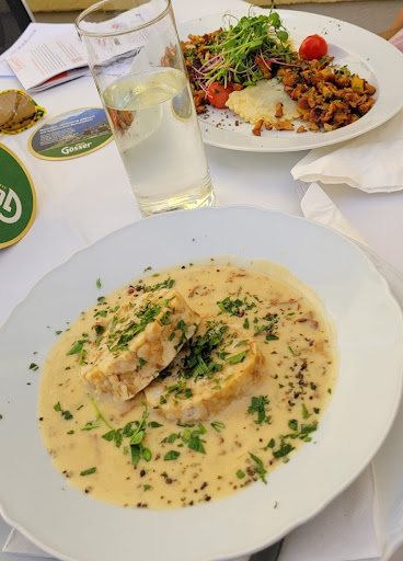 Read moreFreundliche Begrüßung durch den Chef, der auch gleich einen passenden freien Tisch empfohlen hat. Trotz ziemlich vollem Lokal flotte Bedienung durch den freundlichen Kellner und die Küche war auch schneller als wir essen konnten. Die Tageskarte mit interessanten und für die Region teilweise außergewöhnlichen Gerichten machte die Auswahl zum Vergnügen. Alles schmeckte vorzüglich - Dinkelfrittatensuppe und Gemüsesuppe, Eierschwammerlsauce und hausgemachte Nudelteigtaschen mit gerösteten Eierschwammerln und zuletzt die Himbeer-Brombeertorte (letztere sogar für mich als Diabetiker geeignet). Die Portionen waren mehr als ausreichend groß und die Preise für das Angebotene günstig. Klare Empfehlung also und die anschließende Wanderung in der wunderschönen Umgebung St. Leonhards war...