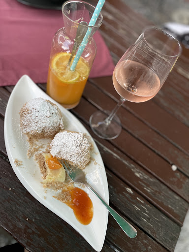Hatten einen idyllischen Platz und die Bedienung freundlich und flink brachte die bestellten Getränke. Das Essen 1/2 Backhuhn mit Salat wurde 20 Minuten später serviert. Beim Zerteilen eines Huhnstückes fiel mir gleich die rosa Fleischfarbe auf und im Gelenk war es blutig besser blutig gesprenkelt. Der Bedienung habe ich es mit dem Wunsch des Nachbackens im heißen Öl möglich auch Fritteuse mitgegeben, mit der Begründung, dass ich es durchgebacken möchte und nicht blutig. Im Sommer bei dauender großer Hitze wie wir sie auch hatten besteht bei Eiern und Geflügel eine erhebliche Gefahr von Salmonellen Bildung.