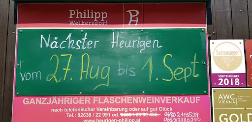 A perfect place to be - with the most enjoyable food and award-winning wines from own production. To my observation these wines have been developed by cumulating the experience and knowhow of many generations of the family Philipp with a lot of love and care. When this Heurigen is open (in Austrian "ausg'steckt"), I'll try my best to come...