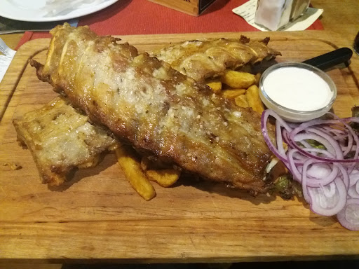 Read moreNun. Lokal ziemlich voll, ein freundlicher Kellner, der uns zu einem Tisch gebracht hat. Erster Eindruck: finster, kalt. Okay. Leider zu finster zum Karte lesen, Zugluft und Kälte von der Auslagescheibe. Getränke bestellt. 2 große Soda. Schnippischer Komentar der Kellnerin: Nur Soda, ohne nix? Sorry, sind eben Wassertrinker. Getränke kommen. Kellnerin kommt Speisen aufnehmen. Ich frage, ob wir vl. auf einen der Mittlerweile freien Tische wechseln können. Lapidare Meldung: NEIN. Okay, zahlen bitte.Na, sie können doch wechseln.Gut, zweite Chance.Dann jammert die Kellnerin, ja sie muß jetzt umbonieren, blabla. Mir eigentlich egal.Zur Vorspeise ein mal Zwiebelringe, ein mal Chilli Poppers, dann für meine Frau Filetspitzen und Coleslaw. Ich die Tiroler Ripperl, bitte statt den Wedges Colesaw und ein mal Speckfisolen. "Des geht ned so zum tauschen, des miassns zoin!" " kein Thema, klar zahle ich das auf" Wir saßen mit Blick auf d. Küchentüre, sehr verwundert, es geht nix aus d. Küche raus...Nach 47 (!) Minuten kommen meine Ripperl, EINE Portion Coleslaw, dann d. Fisolen, Teller meiner Frau. Nein Danke, die Vorspeise brauche ich jetzt nicht mehr. Die Filetspitzen meiner Frau: 5 Stk Fleisch, ca 2,5cm mal 3,5cm, 4mm dick, schwarz, trocken, lauwarm, mitten am Teller. Keine Ahnung was das war, jedenfalls nichts zum Essen. Coleslaw: Krautblätter in 5mm Streifen, mit Joghurtdressing. Seltsam. Die Ripperl lauwarm, trocken, ungewürzt. Speckfisolen: TK-Fisolen, lauwarm, roh, mit rohen Speckwürfeln. zahlen. Auf d. Rechnung dann alles was ich bestellt habe, auch das NICHT servierte. 62Euro bezahlt, 1,5Stunden für nix. Nichts gegessen. DANKE FÜR NICHTS!