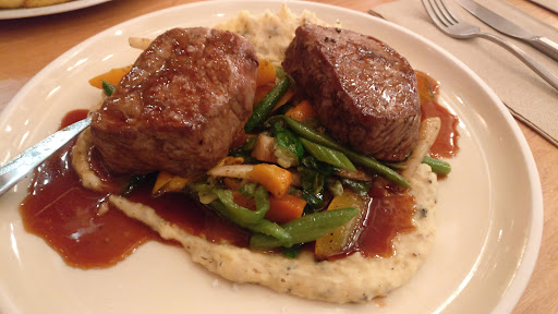 soup was good, lots of garnish, liver pate also good. main course, goose, was kind of tasteless, my leg (drum-stick) dry and very chewy, whole dish served in a smaller plate, meat on top of red cabbage, dumplings in/on the cabbage sauce, hard to eat. deserts, lemon tarte and apple cake, very good. wine pairing quite ok. friendly staff, nice interior atmosphere, with more people later on getting full and also cosier, warmer.