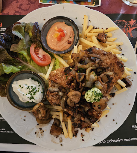 Der Gastgeber: Zügiges und freundliches Personal, zurückhaltend genug, aber stets mit einem flotten Spruch und einem Lächeln da, wenn man etwas möchte. Wir hatten morgens online reserviert und taggleich trotz des Feiertags war das Einkehren abends möglich als 7er-Gruppe (2 Kinder darunter) plus Hund.